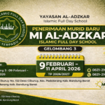 Gelombang 3 Penerimaan Murid Baru MI Al-Adzkar Islamic Full Day School Alhamdulillah, MI Al-Adzkar Islamic Full Day School kembali membuka Penerimaan Peserta Didik Baru (PPDB) Gelombang 3 Tahun Pelajaran 2026-2027. Kesempatan emas bagi Ayah dan Bunda yang ingin memberikan pendidikan terbaik bagi putra-putrinya dengan perpaduan iman, ilmu, dan akhlak mulia. 🌿 Mengapa Memilih MI Al-Adzkar?